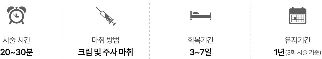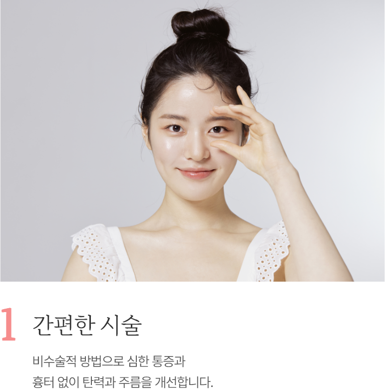 비수술적 방법으로 심한 통증과흉터 없이 탄력과 주름을 개선합니다.