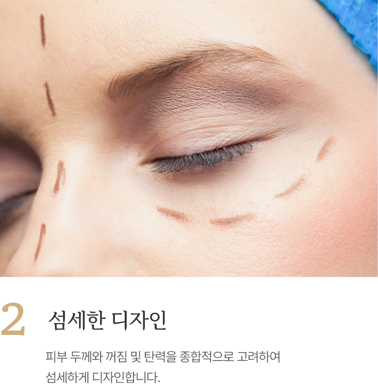 피부 두께와 꺼짐 및 탄력을 종합적으로고려하여 섬세하게 디자인합니다.